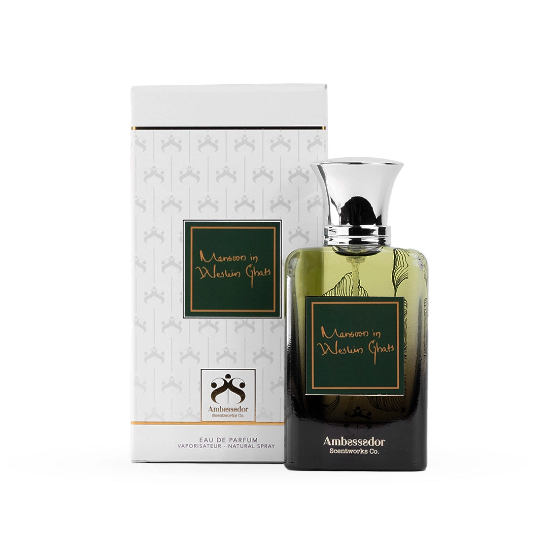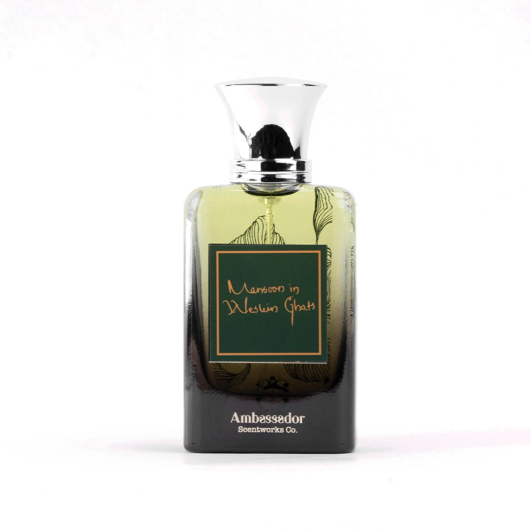 Monsoon in Western Ghats is a fresh, earthy fragrance blending aqua, citrus, patchouli, and moss. It captures the rejuvenating spirit of rain-soaked forests, perfect for nature lovers seeking tranquility.