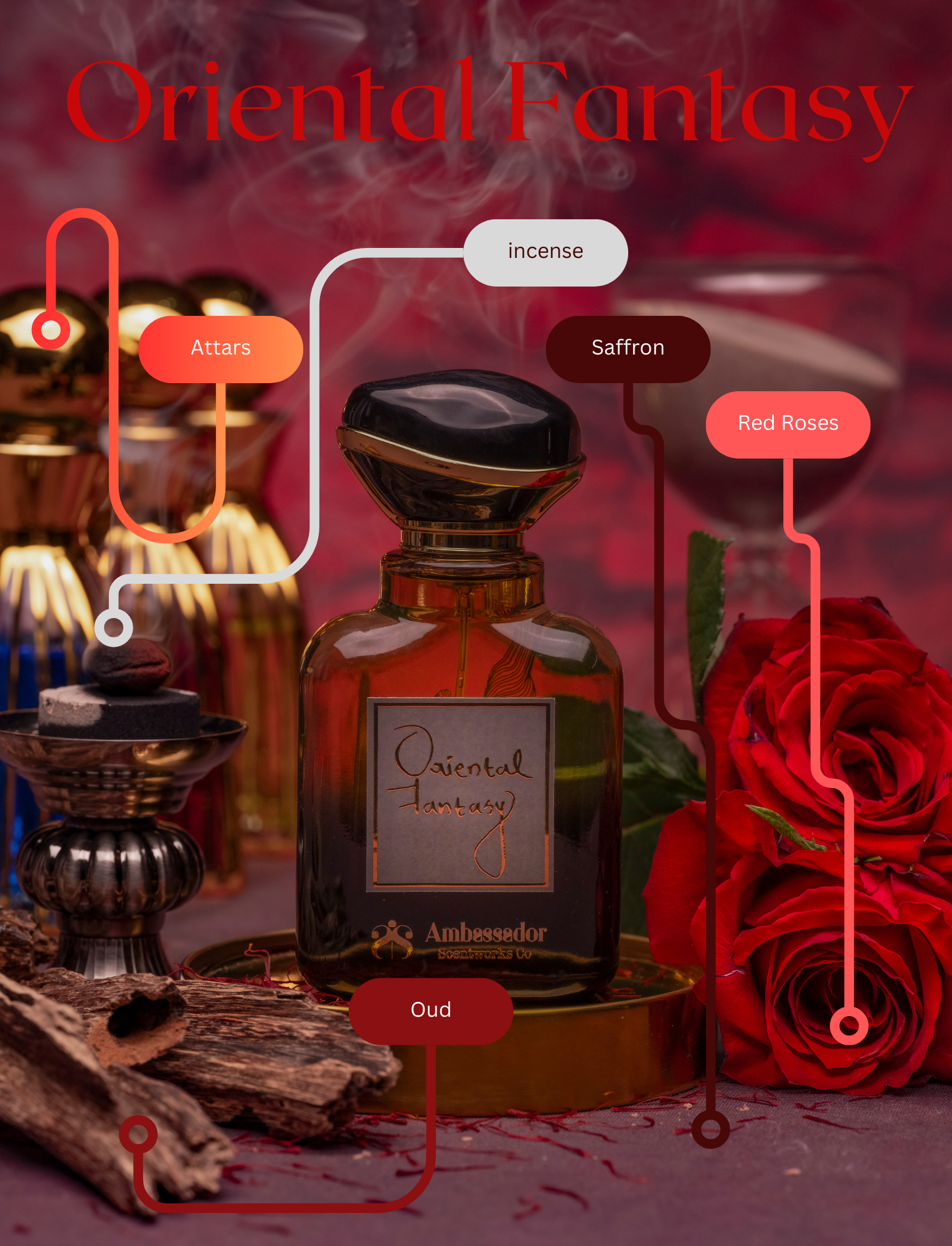 Step into the enchanting world of Oriental Fantasy, a fragrance that captures the mystery and splendor of the East. Oriental Fantasy is a celebration of bold traditions and modern sophistication, perfect for those who dare to indulge in their dreams and fantasies.