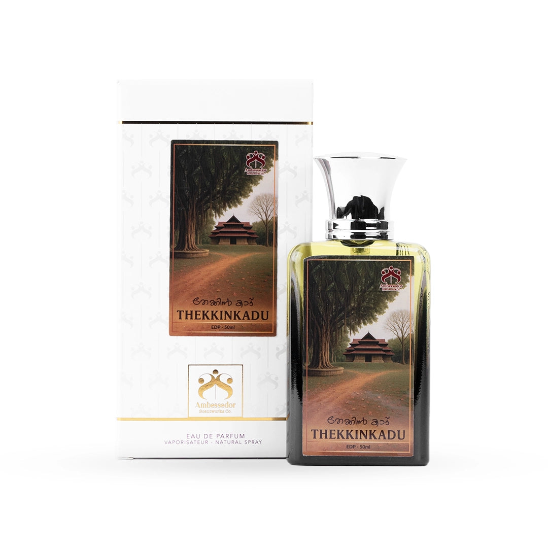 Amid this divine bustle, the gentle scent of bhasmam — the sacred ash offered in temples — blends with the warm creaminess of sandalwood, clinging softly to the skin like a blessing. Thekkinkadu, as a fragrance, is a memory of those festival mornings — earthy, spiritual, rooted in culture and draped in the fragrance of devotion.